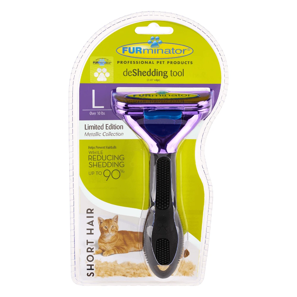 ![Furminator DeShedding Tool - Large Cat Short Hair Metallic [Purple] 3 Furminator DeShedding Tool - Large Cat Short Hair Metallic [Purple] - Image 3](https://www.furminatopetcare.com/wp-content/uploads/2025/01/FU-01225-2.webp)