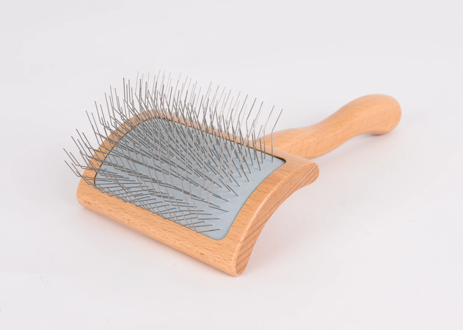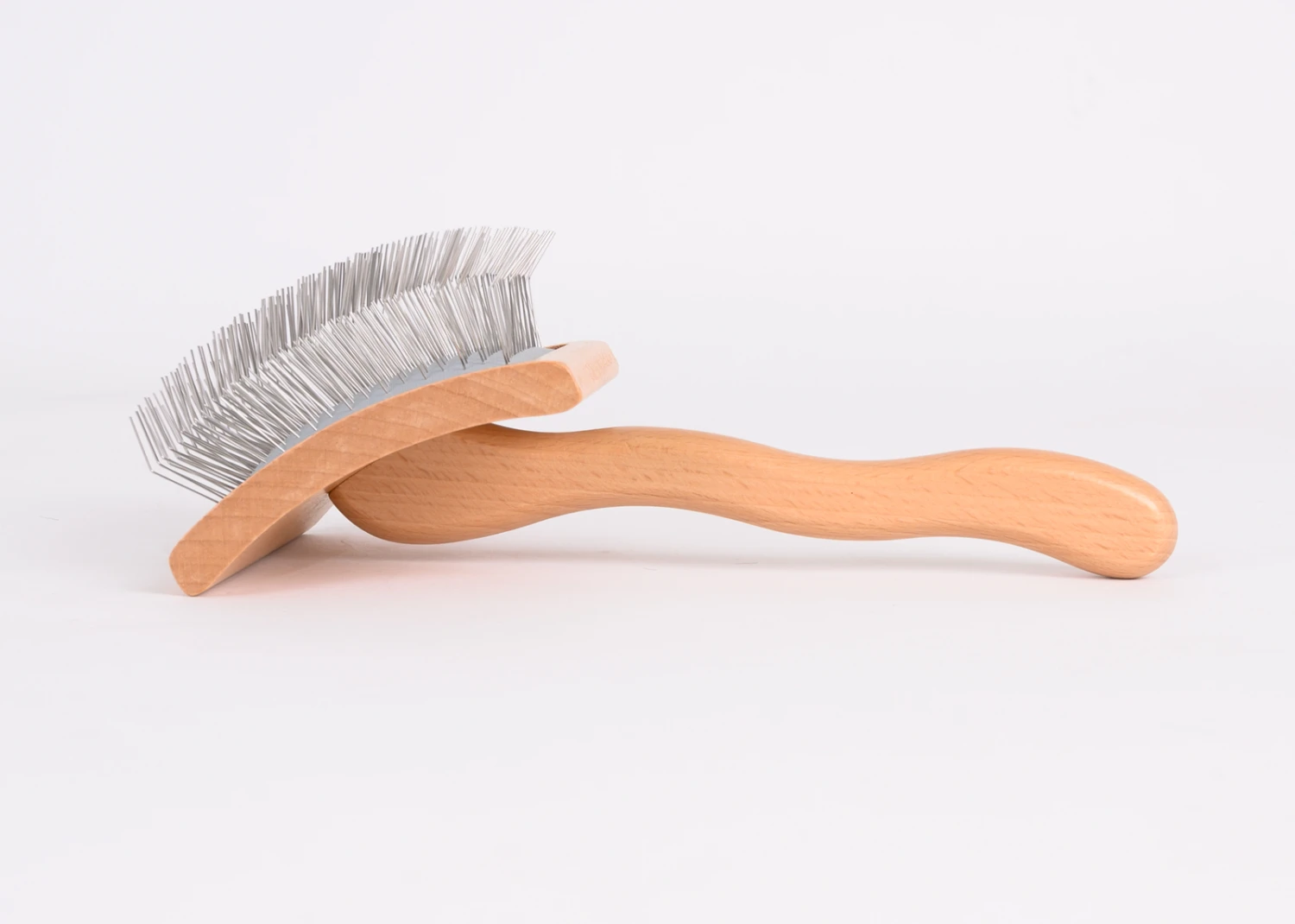 This amazing slicker was originally designed for the unique needs of the Black Russian Terrier, but there are dozens of breeds that need this brush! Use to detangle and remove knots in long and difficult coats. Gets to the root to remove hard-to-reach undercoat. Long pins penetrate deep into denser coats. The flexible cushion is gentle and forgiving.
